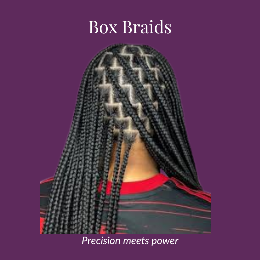 Box braids are more than a hairstyle they’re a statement. Crafted with crisp parting and consistent length, our Box Braids give you a flawless finish that’s protective, stylish, and built to last.