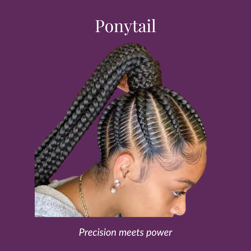 Introducing our signature High Ponytail Stitch Braids — a sleek, sculpted masterpiece that blends flawless parting, smooth edges, and braided perfection into one bold style. Whether you're stepping out for a special event or just want your crown to command attention, this look is built to stand tall — literally.